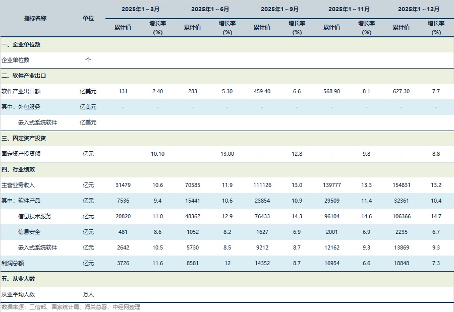 2025年1~12月软件行业关键指标表(2026-02-01)