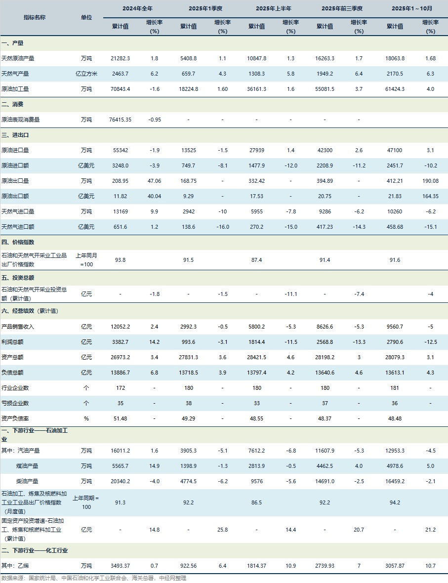 2024年1~10月石油天然气行业关键指标表(2025-12-01)